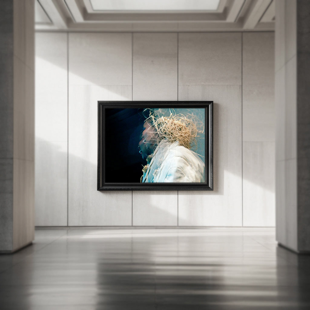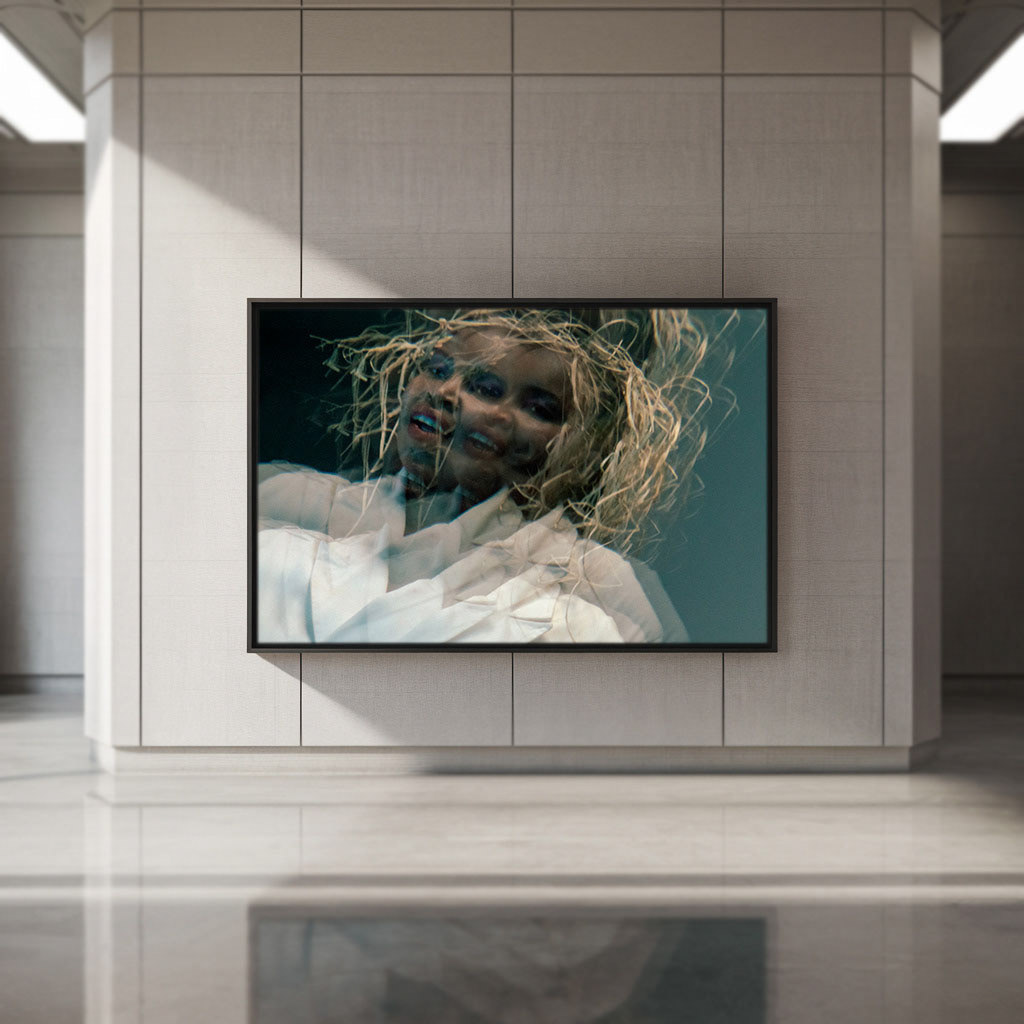 A moment suspended between motion and stillness. The cool tones and layered movement create a dreamlike rhythm, where presence and absence merge in a dance of light.