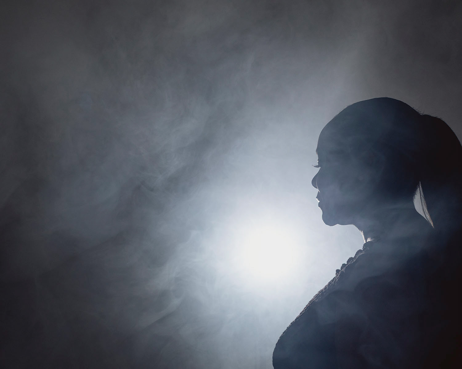 She stands in the space between certainty and surrender — unshaken, unhurried, aware of all that lives in her silence. Shadow at her back, future in her frame.