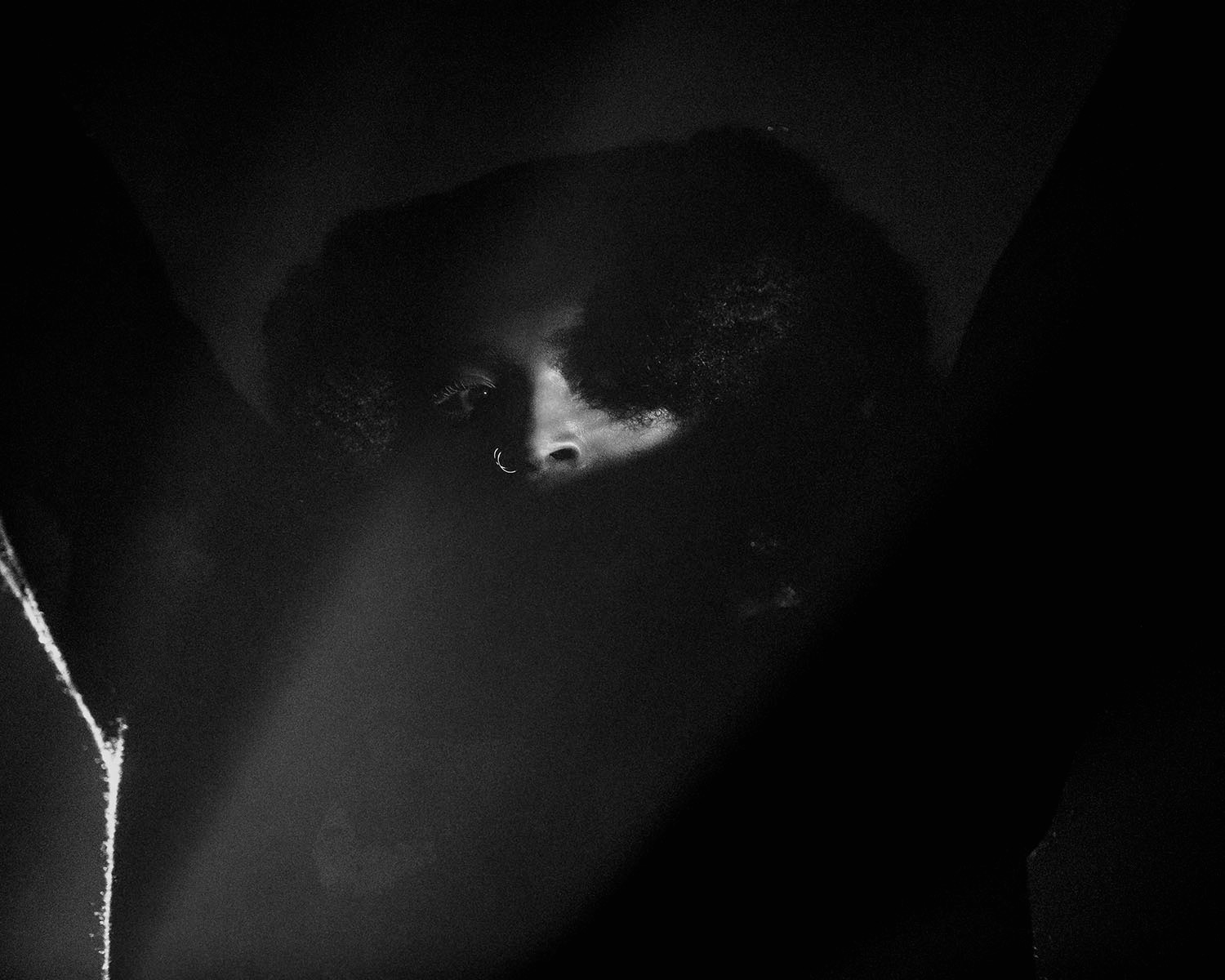 ThresholdA quiet emergence from darkness, where light becomes both a barrier and an invitation—seen, yet not fully revealed.