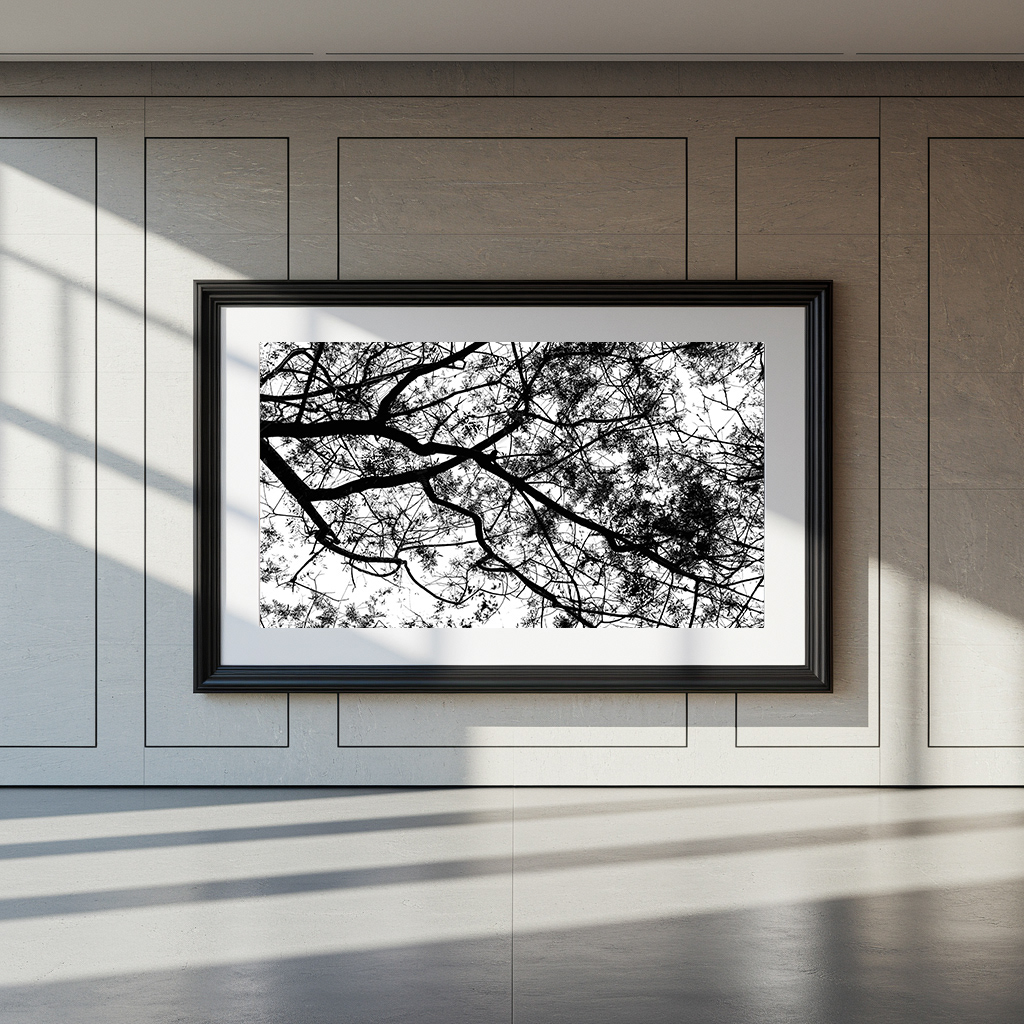 Where light is filtered through a web of branches — a quiet geometry of nature holding the sky in place. Stillness above, movement below.